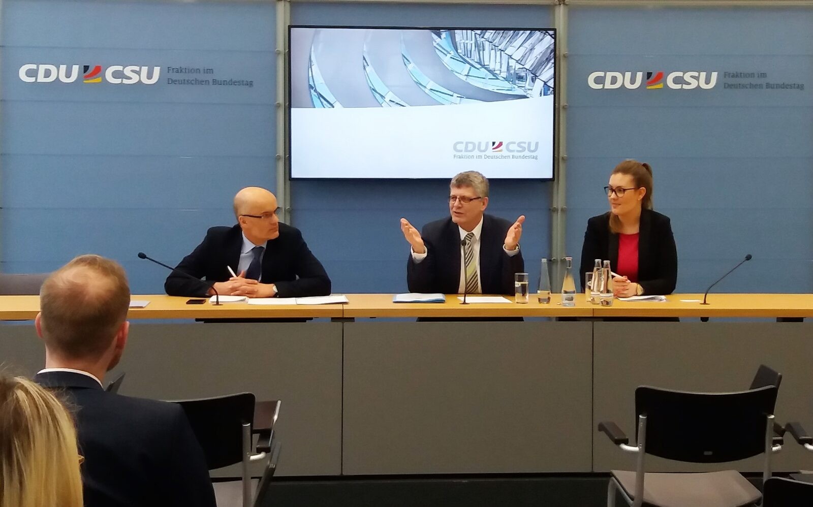 - Auf dem Podium der Presselounge im Reichstagsgebäude
